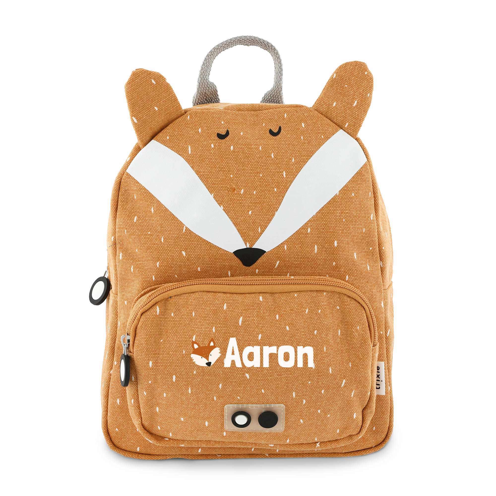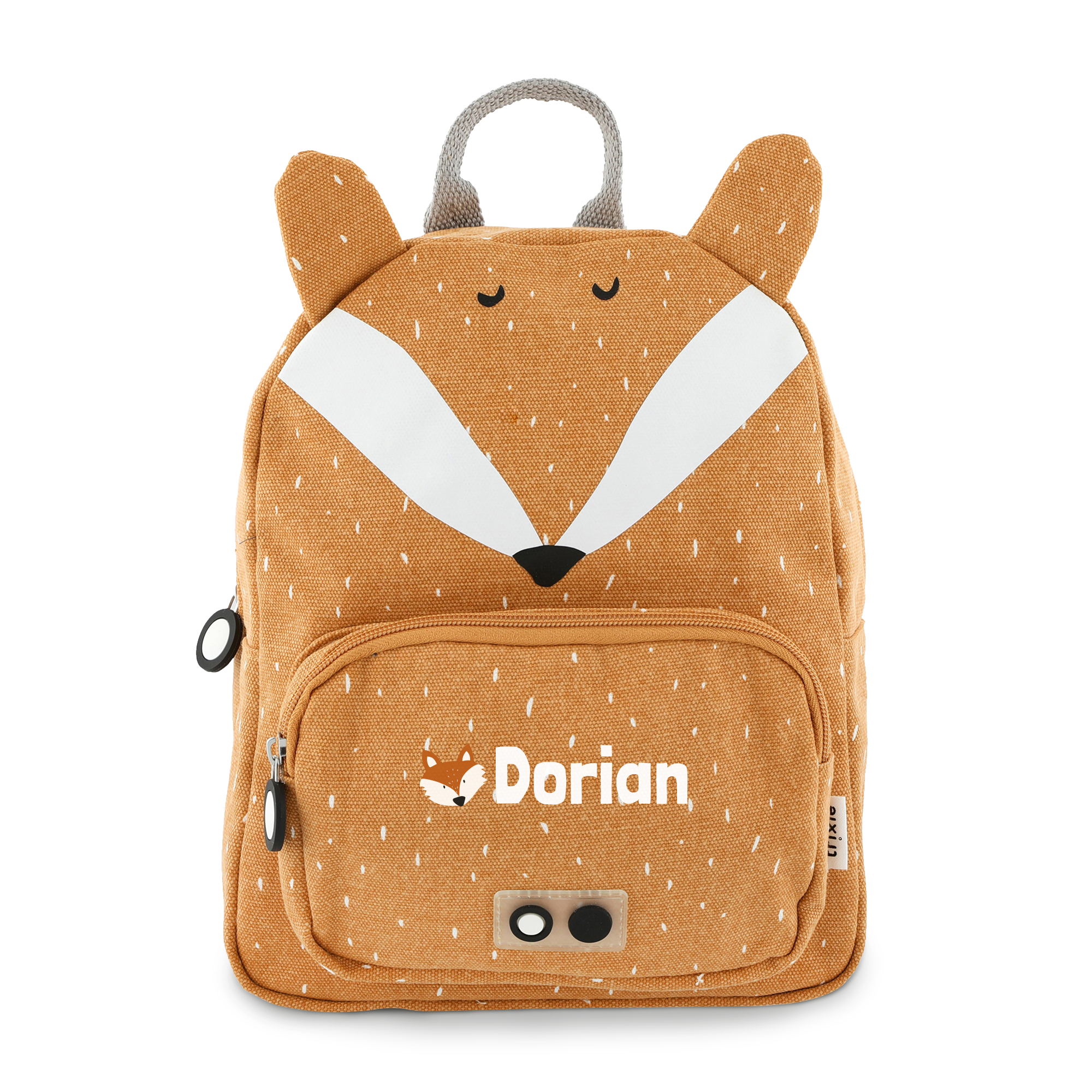 Maggiori informazioni sullo Zaino per Bambini Trixie:Tipo: Mr. VolpeMarchio: TrixieMateriale: 100% cotone - fodera: 100% cotoneDimensioni 31 x 23 cmDimensioni personalizzazione: 5 x 10 cmPersonalizzazione: con nomeStampa: nitida e nei colori più belliExtra: lo zaino ha un rivestimento idrorepellente, scomparto principale con cerniera, tasca interna con zip, tasca frontale con zip, spallacci e cinghia pettorale regolabiliRimuovi le macchie con un panno umido