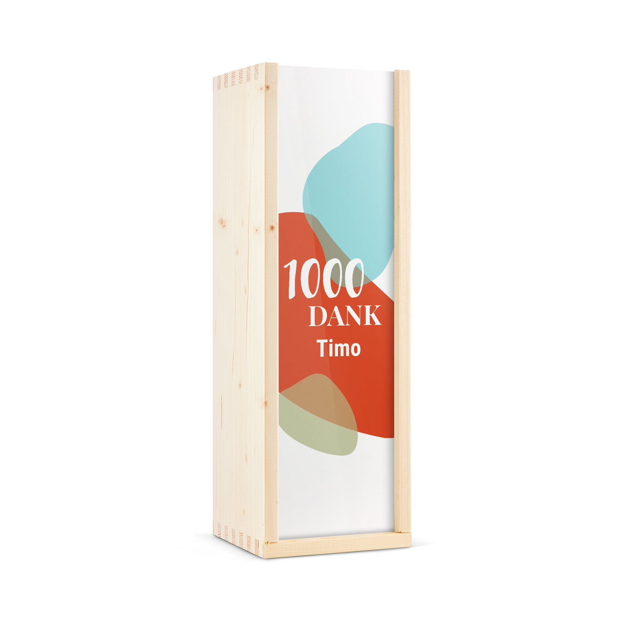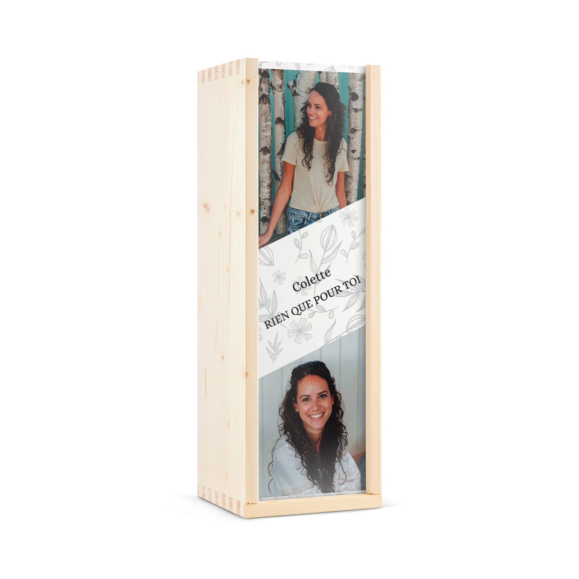 Una deliziosa bottiglia di vero champagne Moët & Chandon in una custodia in legno personalizzata con il tuo nome o testo. Varie misure di bottiglie disponibili!