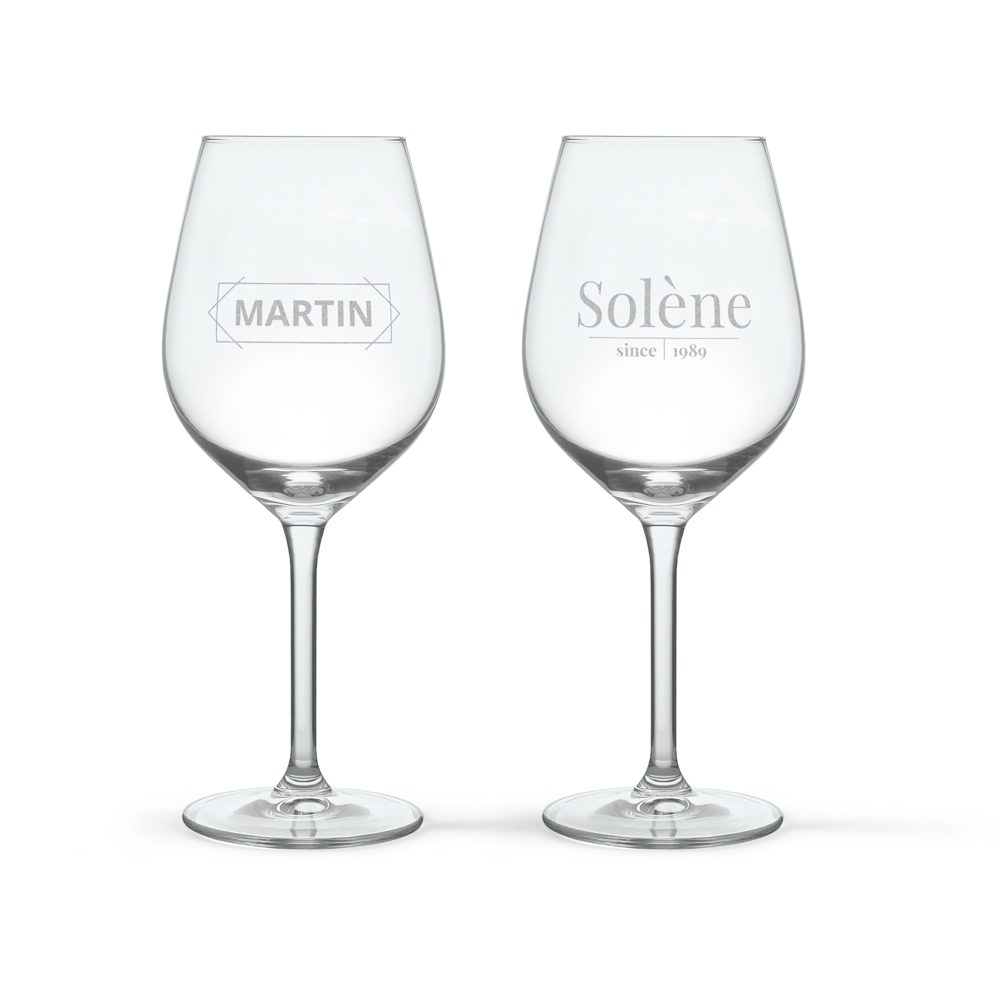 2 splendidi calici da vino incisi con il tuo testo o nome.Informazioni aggiuntive:Marca: Royal Leerdam Tipo: L'Esprit Diametro del bicchiere: 8,5 cm Altezza del bicchiere: 20,5 cm Diametro del piede: 7 cmVolume: 37 cl Vino: Bianco Metodo di personalizzazione: incisione laser di alta qualitàIncisione: bianca, nota che il risultato finale potrebbe apparire diverso dall'immagine mostrata Extra: Lavabile in lavastoviglieVuoi far incidere un logo su un bicchiere? Contatta il nostro gentile servizio clienti.