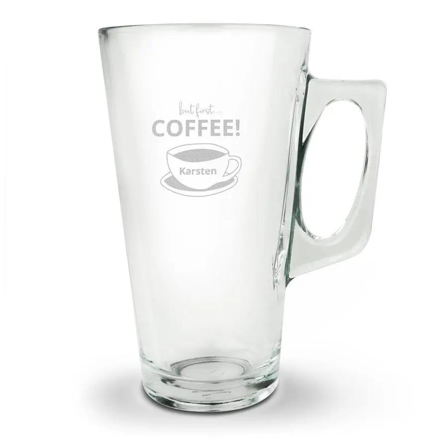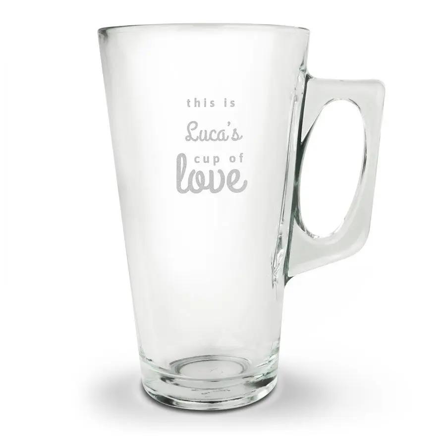 Gustati un latte macchiato in un bicchiere inciso con il tuo nome, una frase o un logo.