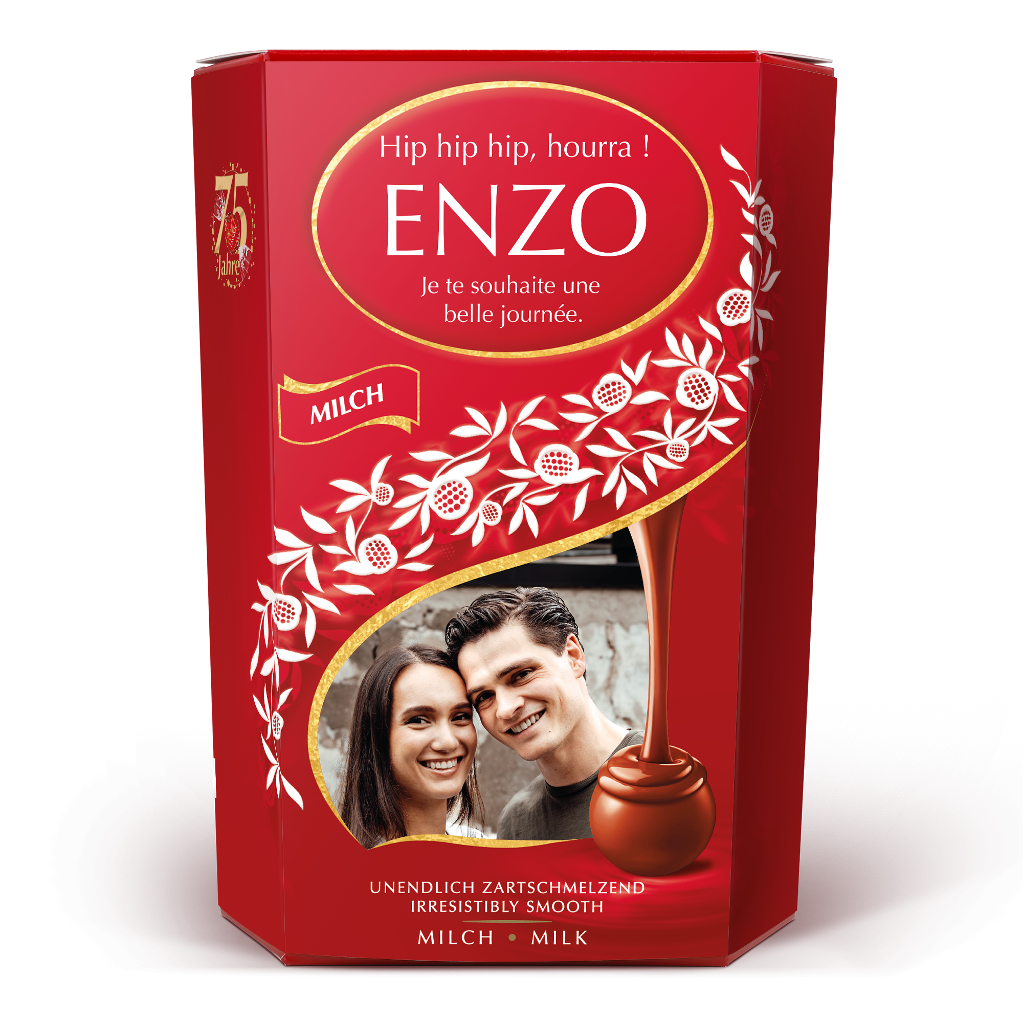 Ulteriori informazioni sulla confezione regalo di cioccolato Lindt: Cioccolato: cioccolato al latte Lindor con ripieno morbido e fuso Peso: 500 grammi Dimensioni: 14,4 x 8,3 x 19,5 cm Personalizzazione: con foto, nome e messaggio personale Stampa: perfetta e a colori Per motivi tecnici, purtroppo non è possibile aggiungere caratteri cirillici, arabi o speciali. Quando la temperatura esterna è di 25 gradi Celsius o superiore, non possiamo garantire la qualità del cioccolato. Ingredienti: Zucchero, grassi vegetali, burro di cacao, pasta di cacao, latte intero in polvere, lattosio, burro, latte scremato in polvere, emulsionante (lecitina di soia), estratto di malto, aromi naturali. Contenuto di cacao: Il cioccolato al latte contiene almeno il 32% di cacao. I solidi del latte contengono almeno il 21% di cacao. Allergeni: Può contenere nocciole e altra frutta a guscio