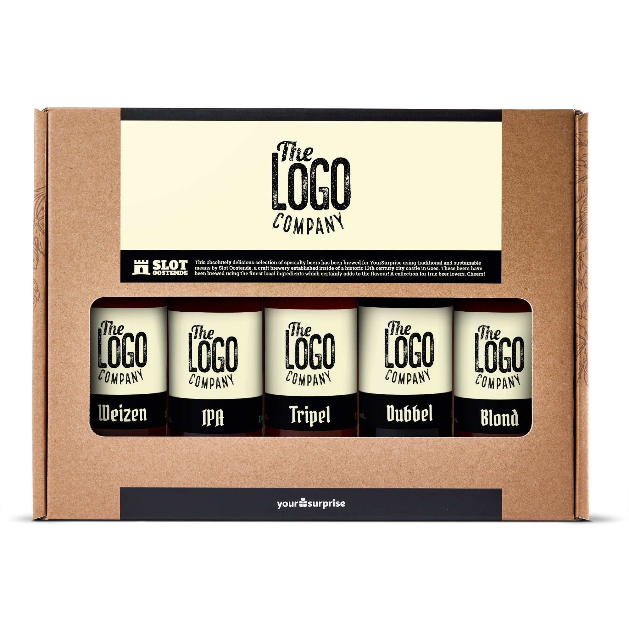 Ulteriori informazioni sulla collezione di birre personalizzate:Bottiglie: 5Birreria: Slot Oostende (birreria olandese)Quantità per bottiglia: 330mlDimensioni della confezione regalo: 40,1 x 29,4 x 7,4 cmPersonalizzazione: con nome, foto e/o logoStampa: a colori di alta qualitàPosizionamento della personalizzazione: sulle singole bottiglie e sulla confezione regaloBirre nel set:Chiara: fruttata, amara con un fresco aroma di pompelmo (5%)Doppia: più secca del normale e, pertanto, qualcosa di un po' diverso dal solito (7%) Tripla: speziata e corposa, gustosa da bere (8%)Weizen: una deliziosa birra bianca con un tocco tedesco (4,5%) India Pale Ale: con un pizzico di spezie e molto rinfrescante (6%)Ingredienti: acqua, malto d'orzo, luppolo, lievito Informazioni allergiche: contiene glutine