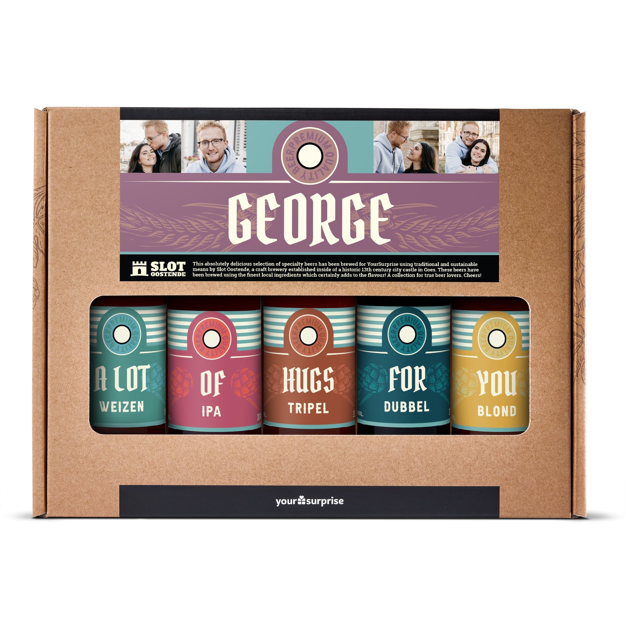 Fai una sorpresa al tuo amante della birra preferito con questa confezione regalo personalizzata. Una lussuosa confezione regalo di birre contenente 5 bottiglie. Davvero unica, con nome e foto!